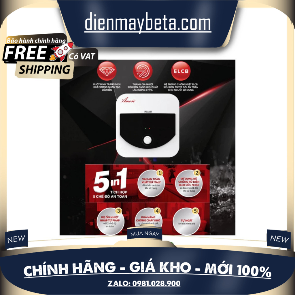 20L | Rossi AMORE 20 lít vuông – Bình Nóng Lạnh gián tiếp chống giật RAM-20SQ R20TI