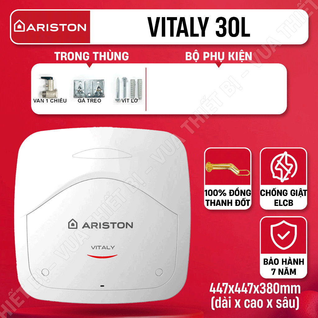 30L | ARISTON VITALY 30 lít vuông – Bình nóng lạnh gián tiếp chống giật 2.5FE 2500W