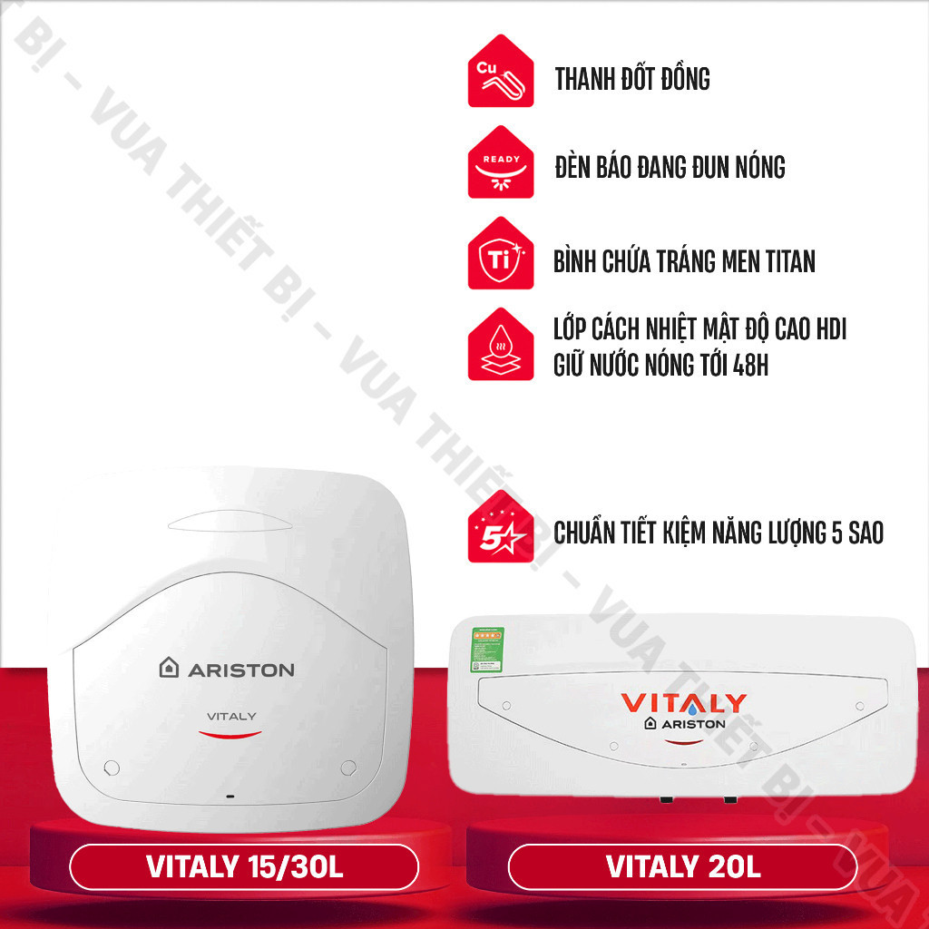 Review 30L | ARISTON VITALY 30 lít vuông – Bình nóng lạnh gián tiếp chống giật 2.5FE 2500W