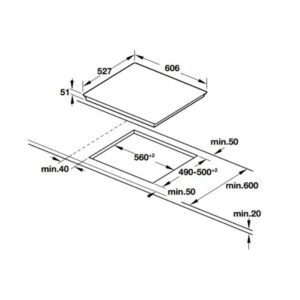 Vùng nấu bên trái: 1 x Ø 210/ 260/ 320 mm, 2.2/ 2.6/ 3.3 KW (có thể tăng đến 4.4 KW)