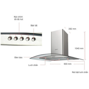 Máy hút khói Candy CGM94X có thiết kế hiện đại với đèn LED chiếu sáng tiết kiệm tới 90% năng lượng ánh sáng thông thường, giúp khu vực nấu ăn của bạn được sáng sủa, dễ dàng quan sát hơn khi nấu ănThông số kỹ thuật: