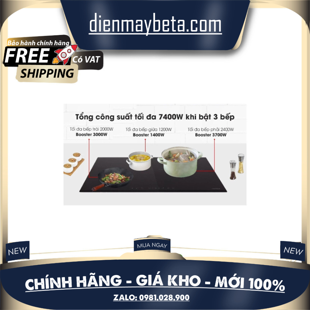 Loại bếp:Bếp từ 3 vùng nấu, Bếp âm cần lắp CB