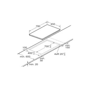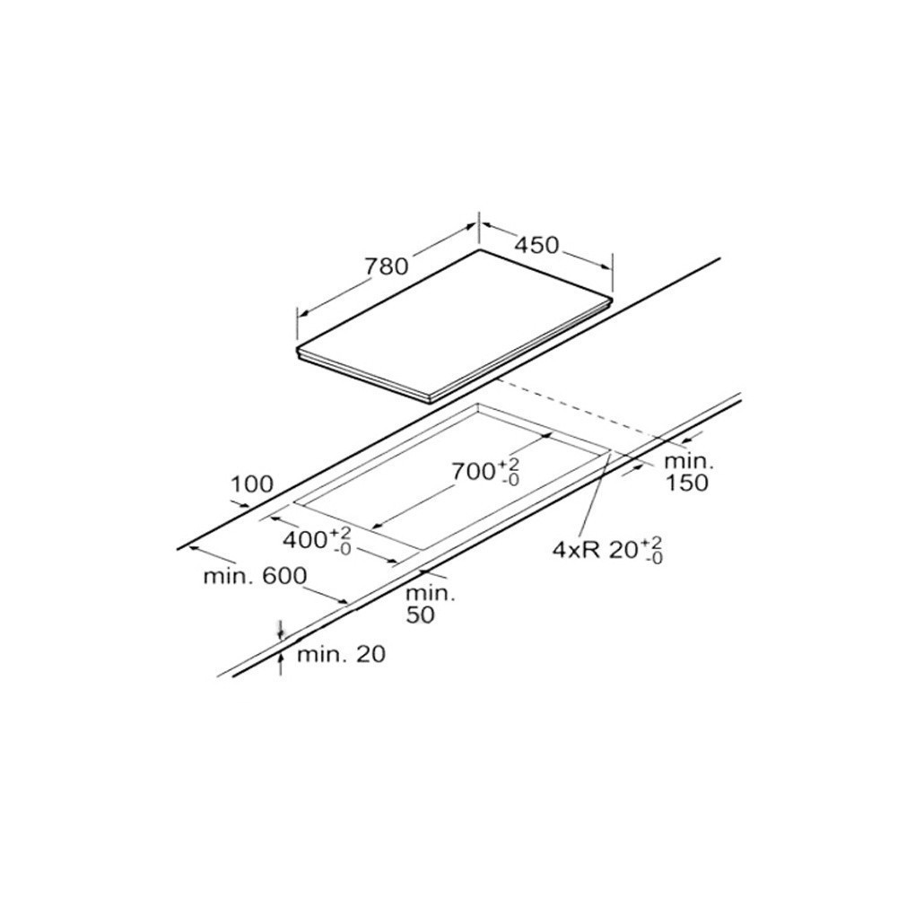 Kích thước vùng nấu:Trái: Ø 21 cm – Phải: Ø 21 cm
