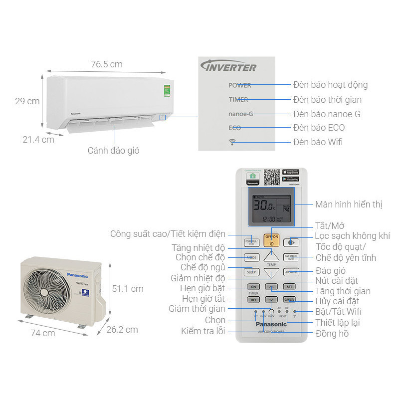 CU/CS-PU9AKH-8 Máy lạnh 1 chiều inverter PANASONIC 9000 BTU CU/CS-PU9AKH-8 – Bảo hành chính hãng