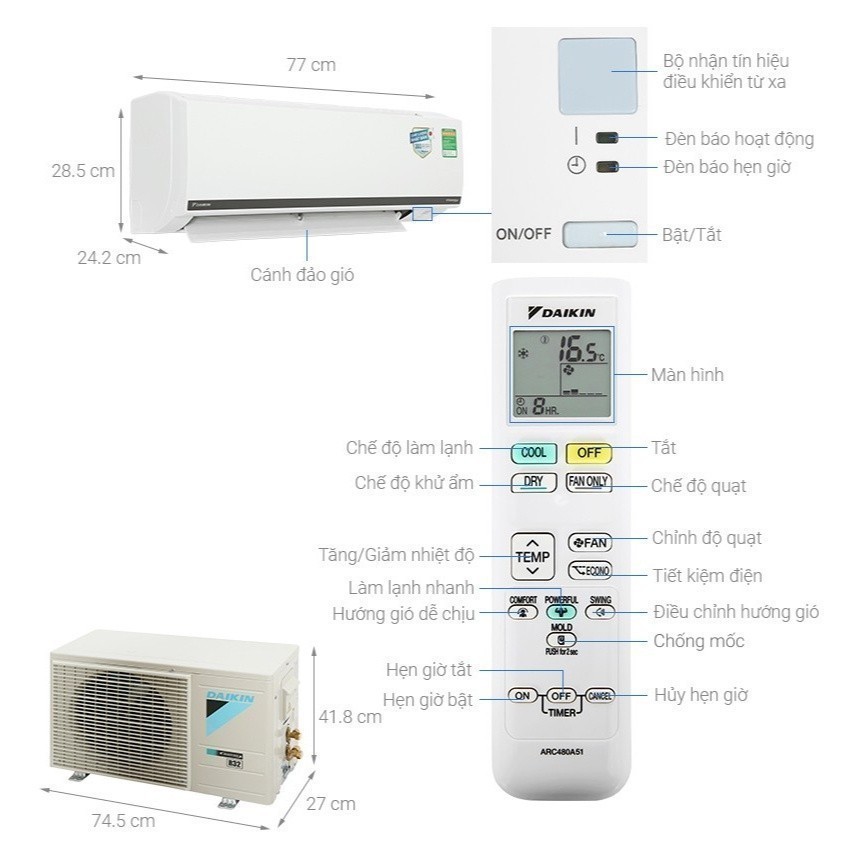 Thiết kế hiện đại, công suất làm lạnh 1HPMáy Lạnh Daikin Inverter 1 HP FTKB25WMVMV/RKB25WMVMV được thiết kế nhỏ gọn và trang nhãMáy Lạnh Daikin Inverter 1 HP FTKB25WMVMV/RKB25WMVMV được thiết kế nhỏ gọn và trang nhãVới công suất làm lạnh 1HP, sản phẩm phù hợp làm mát cho không gian có diện tích dưới 15m2 như phòng ngủ, phòng làm việc riêng, phòng khách,…Luồng gió thoải mái Coanda