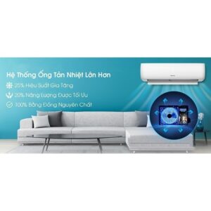Để có thể làm lạnh vượt trội, điều hòa không khí Hisense đã trang bị máy nén chất lượng cao được sản xuất trên dây chuyền liên doanh công nghệ Nhật Bản để có hiệu suất ổn định và độ bền đáng tin cậy HỆ THỐNG TẢN NHIỆT LỚN HƠN Dàn ống trao đổi nhiệt 100% bằng đồng nguyên chất được thiết kế lại với kích thước lớn hơn đến 20% trên cả dàn lạnh và dàn nóng, kết hợp với việc khoang đối lưu không khí trên dàn lạnh được mở rộng hơn về phía sau một cách tinh tế và ưu việt gia tăng khả năng đối lưu không khí và cho hiệu suất cao hơn.SIÊU CHỐNG ĂN MÒN 1500H Công nghệ siêu chống ăn mòn 1500H là sự kết hợp giữa dàn tản nhiệt mạ vàng Golden Fin cùng 7 lớp bảo vệ giúp cho dàn nóng điều hòa không khí Hisense bền bỉ và ưu việt hơn bao giờ hết. Với khả năng chống ăn mòn muối biển, chống chịu thời tiết khắc nghiệt, điều hòa không khí Hisense phù hợp lắp đặt tại mọi vùng khí hậu, đồng thời giảm thiểu chi phí bảo trì 1 cách tối ưu.