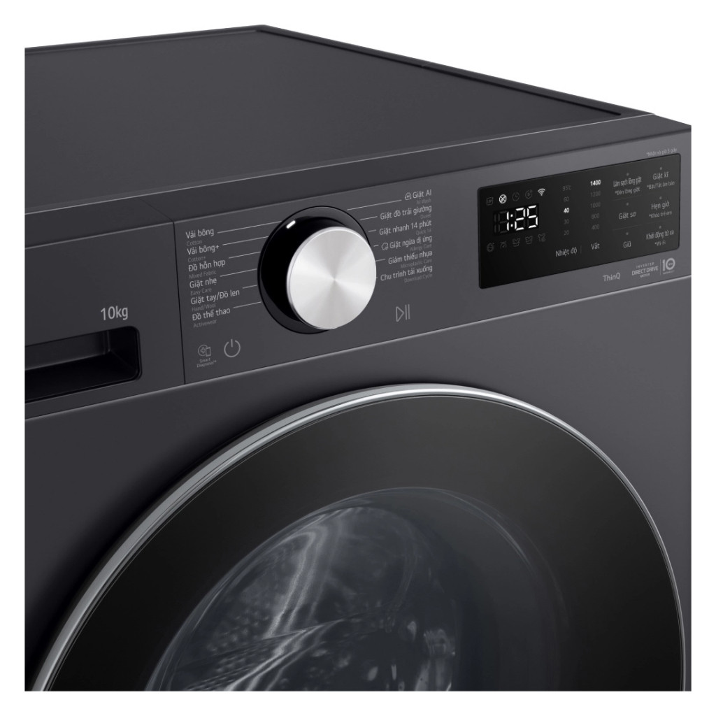 Máy giặt hỗ trợ kết nối thông minh LG ThinQ, cho phép bạn theo dõi và điều khiển từ xa qua điện thoại. Dù ở bất cứ đâu, bạn vẫn dễ dàng kiểm soát chu trình giặt, lựa chọn chế độ phù hợp và nhận thông báo khi giặt xong.