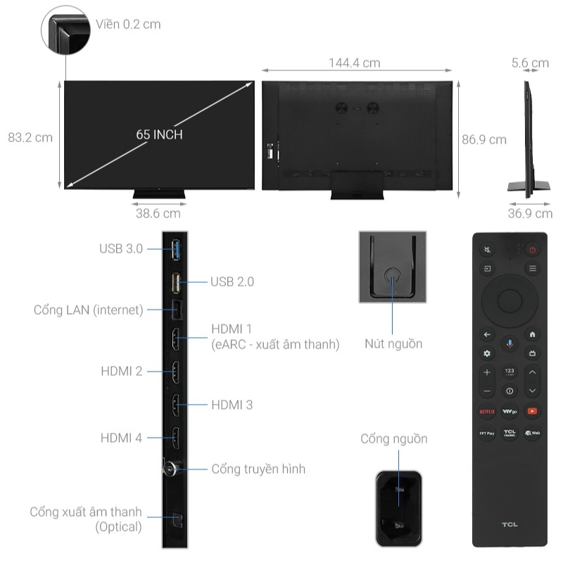 Thông Số Kỹ Thuật Sản Phẩm Google Tivi QD-Mini LED TCL AI 4K 65 inch 65C7K
