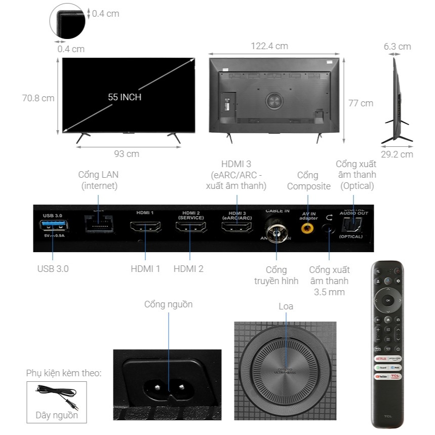 Google Tivi QLED TCL AI 4K 55 inch 55C69B – TV siêu mỏng – Bảo hành chính hãng 24 tháng