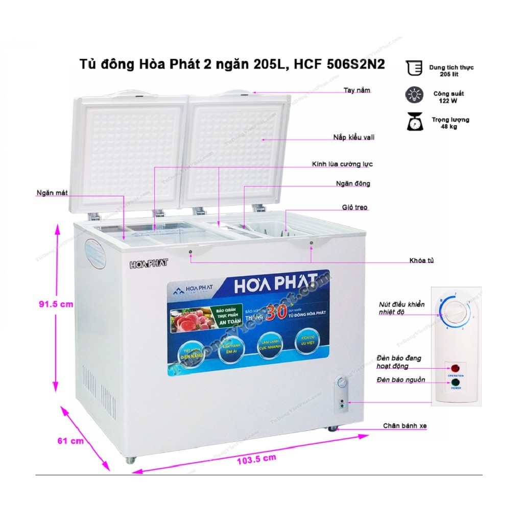 Review HCF 656S2N2 Tủ đông Hòa Phát HCF 656S2N2, 271l 2 ngăn đông mát