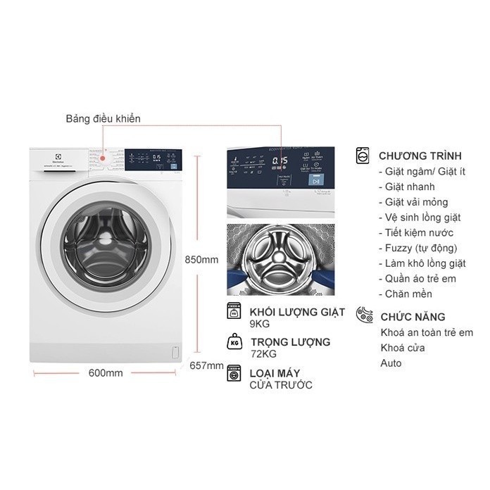 Khối lượng giặt 9kg, thích hợp sử dụng cho gia đình từ 4 – 6 thành viên