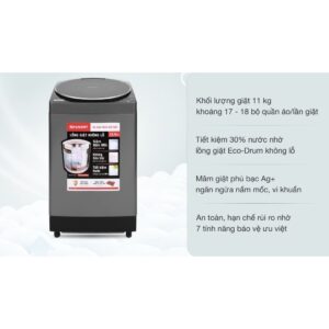 Máy Giặt Sharp 11 Kg ES-W110HV-S Lồng Đứng Mới 100%