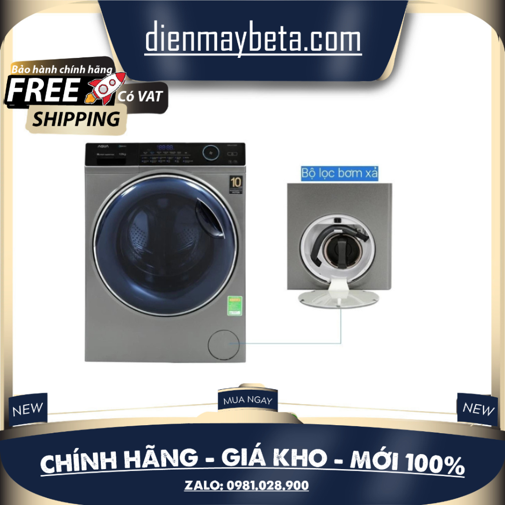 Máy giặt lồng ngang Aqua Inverter 12Kg AQD-A1200H.PS / A1200H – Hàng chính hãng