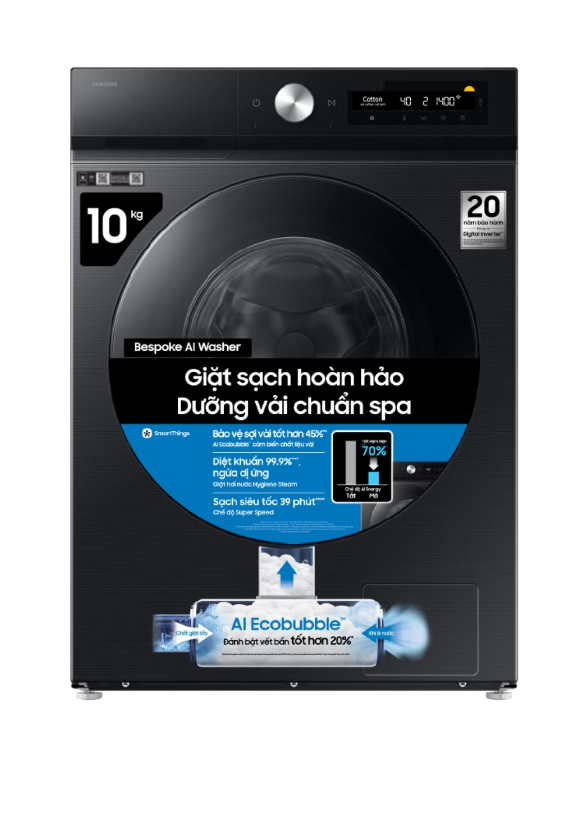 Máy giặt Samsung 10kg WW10DB7U34GBSV Bespoke AI™ – Giặt hơi nước Hygiene Steam, Màu Đen
