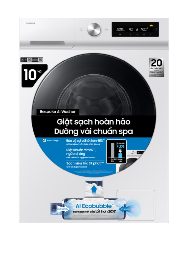 Đánh giá Máy giặt Samsung 10kg WW10DB7U34GWSV Bespoke AI™ – Giặt hơi nước Hygiene Steam, Màu Trắng