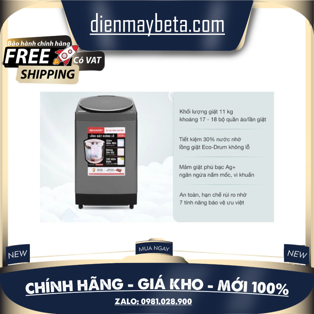 Máy Giặt Sharp 11 Kg ES-W110HV-S Lồng Đứng Mới 100%