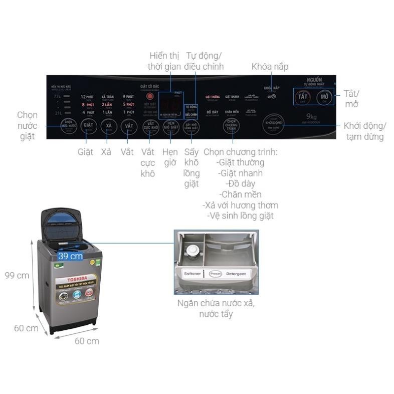 Review Máy giặt Toshiba 9 Kg AW-H1000GV SB