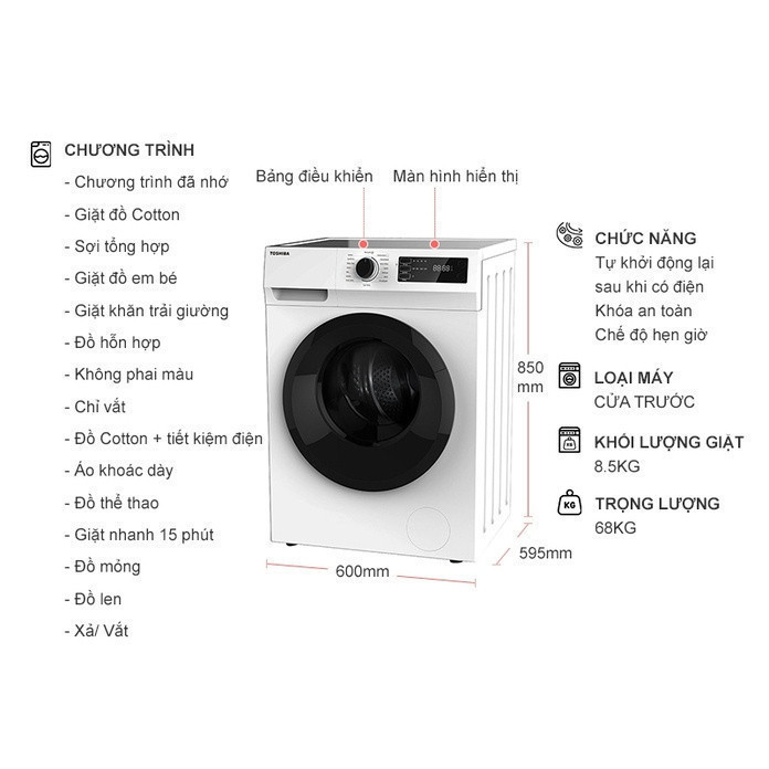 Máy giặt Toshiba Inverter 8.5 kg TW-BK95S2V(WK) DMK