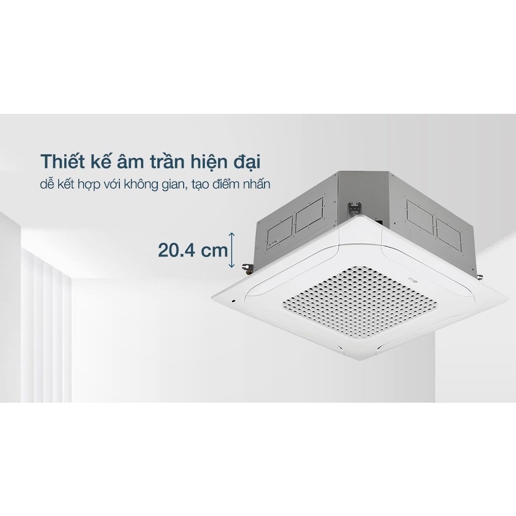Máy Lạnh Âm Trần LG Inverter 2.5 HP ZTNQ24GPLA0/ZUAC1+PT-MCGW0 (1 Pha) có kiểu dáng hình vuông đẹp mắt, đi cùng gam màu trắng sang trọng góp phần làm cho không gian lắp đặt thêm phần hiện đại, thẩm mỹ.Dàn lạnh có chiều dài 84 cm, cao 20.4 cm, dày 84 cm và nặng 19.5 kg, được lắp đặt âm vào trần nhà giúp bạn tiết kiệm được không gian.Với công suất làm lạnh2.5 HP – 24.000 BTU, máy lạnh thích hợp cho căn phòng diện tích từ 30 – 40m² (từ 80 đến 120m³) như phòng khách, văn phòng, nhà hàng, hội trường, showroom…