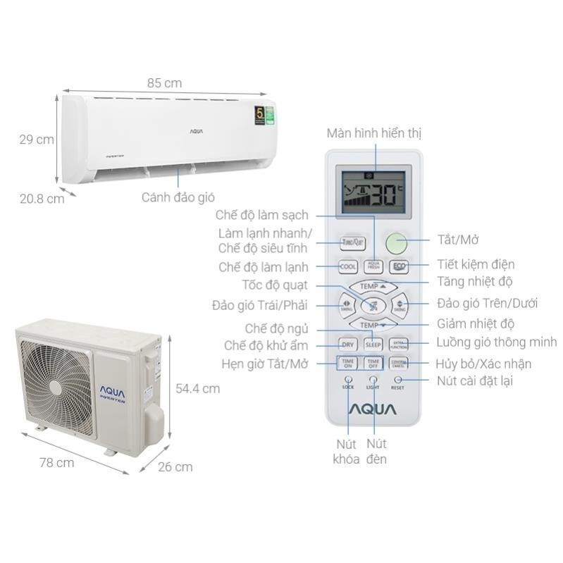 Review Máy lạnh Aqua Inverter 1.5 HP AQA-KCRV13TK (Chính hãng nguyên Seal – Mới 100%) Mới 100%