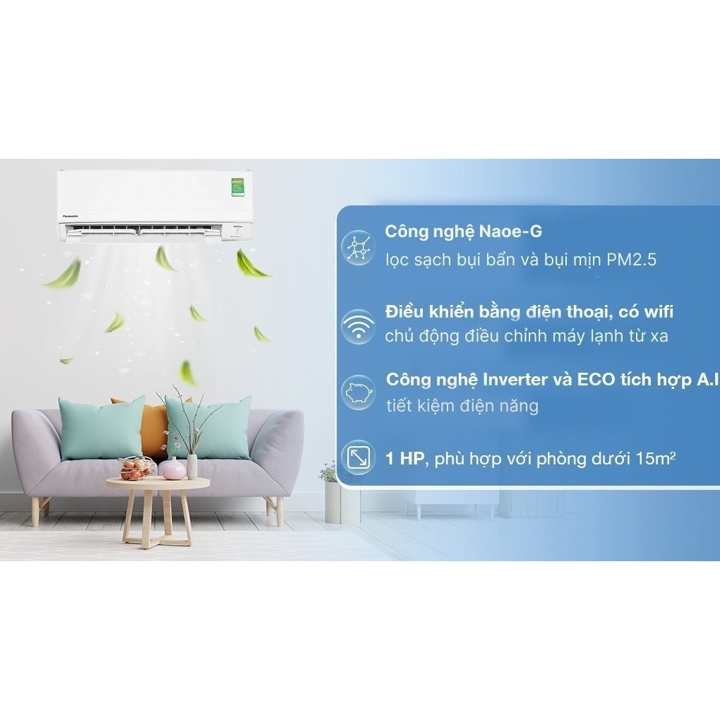 Máy lạnh Panasonic Inverter 1.0 HP CU/CS-WPU9XKH-8 ứng dụng công nghệ Nanoe G nhằm lọc sạch bụi mịn (PM2.5) 99%, hỗ trợ bảo vệ sức khỏe. Ngoài ra, máy lạnh còn có khả năng làm mát thông minh, kết nối di động, tiết kiệm điện với công nghệ trí tuệ nhân tạo Eco + AI kết hợp inverter.Máy lạnh Panasonic Inverter 1.0 HP CU/CS-WPU9XKH-8
