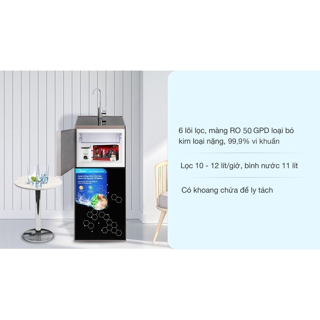 Máy lọc nước cung cấp nước lọc trong sạch, tinh khiết, tốt cho sức khỏe nhờ trải qua hệ thống lọc RO gồm 6 lõi lọc chất lượng