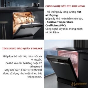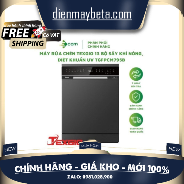 Máy Rửa Chén Bát Texgio 13 Bộ Sấy Khí Nóng, Diệt Khuẩn UV TGFPCM795B – Hàng Chính Hãng, Bảo Hành 5 Năm