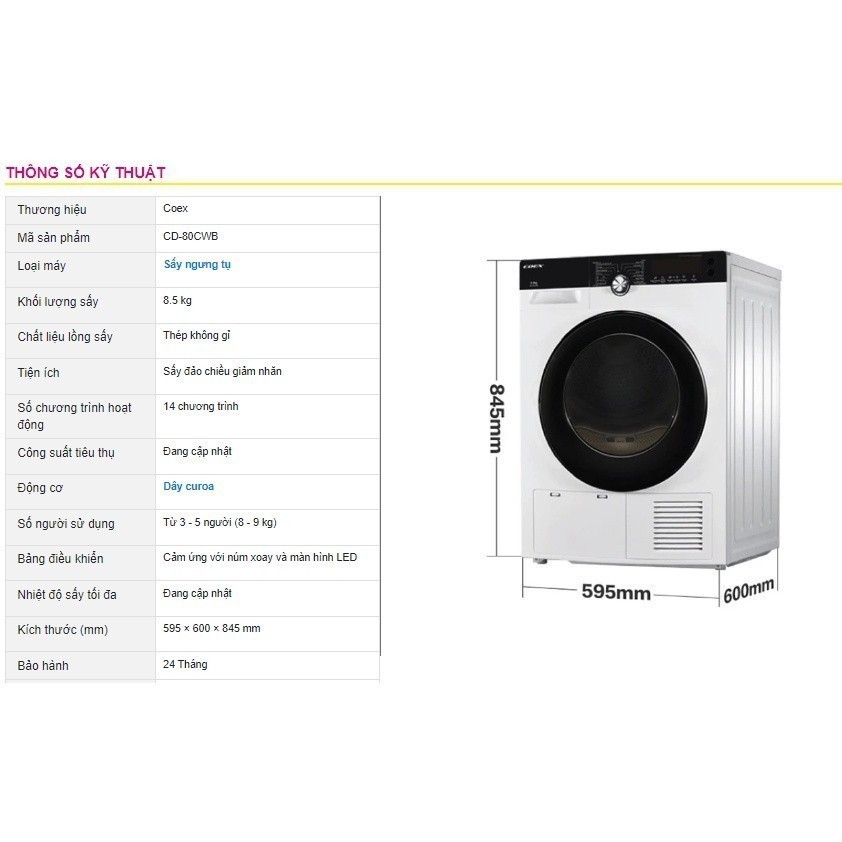 Chiếc máy sấy Coex 8,5kg CD-80CWB có