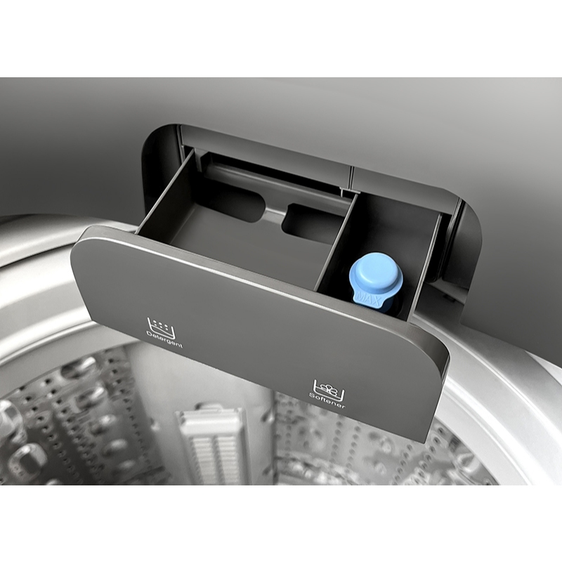 🔷 Kiểu dáng cửa trên lồng đứng gọn gàng, Lồng giặt thép không gỉ hạn chế bám bẩn và bảo vệ sợi vải.