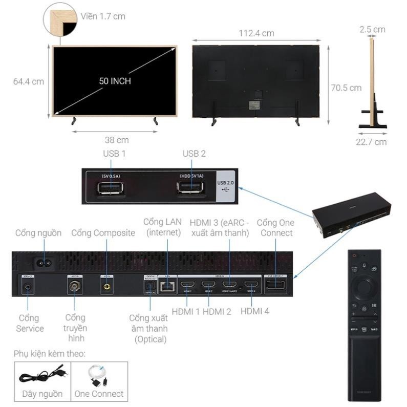 4 cổng HDMI có 1 cổng HDMI ARC, 1 cổng Composite