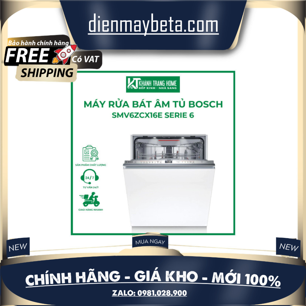 Review SMV6ZCX16E Máy rửa bát âm tủ BOSCH SMV6ZCX16E Serie 6 sử dụng hạt tự nhiên Zeolite sấy làm sạch hiệu quả