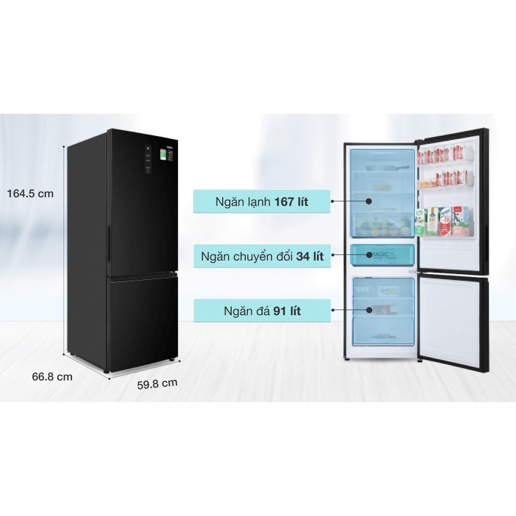 Nếu dùng cho hoạt động kinh doanh (nhà máy, khách sạn, giặt ủi,…) thì không được bảo hành.Thông số kỹ thuật Tủ lạnh Aqua Inverter 292 lít AQR-B348MA(FB)