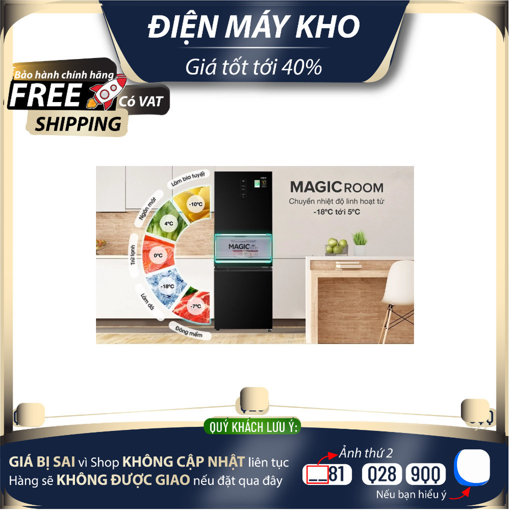Aqua. Giữ thực phẩm tươi ngon, chế biến ngay không cần rã đông nhờ ngăn đông mềm đa năng Magic room -18 đến 5°CNgăn đông mềm Magic Room có khả năng tùy chỉnh nhiệt độ từ -18⁰C đến 5⁰C đáp ứng tối ưu nhu cầu sử dụng của các thành viên trong gia đình bạn bằng cách chuyển đổi thành ngăn đông – 18 độ C, ngăn lạnh 0 độ C hoặc ngăn đông mềm -7 độ C. Bên cạnh đó, người dùng còn có thể trữ lạnh bia tuyết với nhiệt độ -10 độ C hoặc sử dụng ngăn Magic Room như ngăn mát mở rộng để bảo quản rau củ quả nhiệt độ lý tưởng 4 độ C.Tủ lạnh Aqua Inverter 292 lít AQR-B348MA(FB) – Ngăn đa chức năng Magic RoomLọc sạch vi khuẩn, loại bỏ mùi hơi với công nghệ DEO FreshCông nghệ DEO Fresh trên tủ lạnh Aqua Inverter có khả năng loại bỏ vi khuẩn tối ưu nhờ sự hoạt động của ion bạc Ag+, đồng thời mùi hôi khó chịu sẽ bị loại bỏ, trả lại bầu không khí trong lành, sạch khuẩn, cho thực phẩm bên trong tủ lạnh.Tủ lạnh Aqua Inverter 292 lít AQR-B348MA(FB) – Công nghệ Deo Fresh