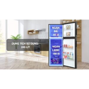 – Dung tích sử dụng 245 lít với ngăn lạnh lên đến 180 lít, thích hợp sử dụng cho gia đình từ 2 – 3 người hoặc gia đình có ít thành viên hơn nhưng nhu cầu dự trữ cao.