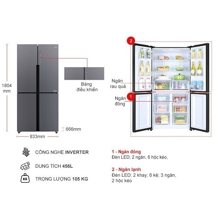 Review Tủ lạnh Aqua Inverter 456 lít AQR-M530EM(SLB) DMK