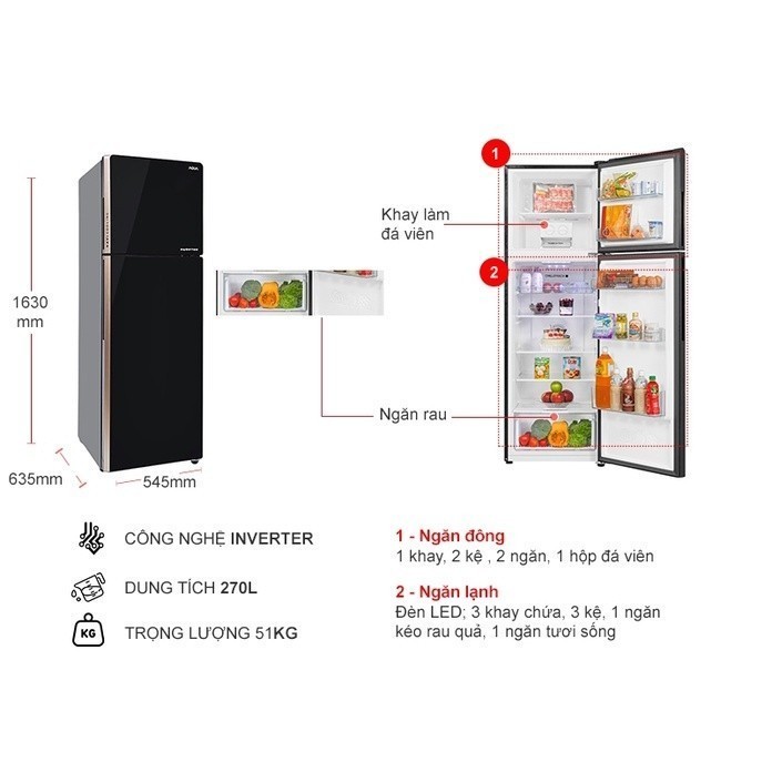 Đánh giá Tủ Lạnh Aqua Inverter AQR-IG288EN (GB) 2 Cánh 270 Lít /Chính hãng BH:24 tháng tại nhà toàn quốc/ – Mới 100% Mới 100%