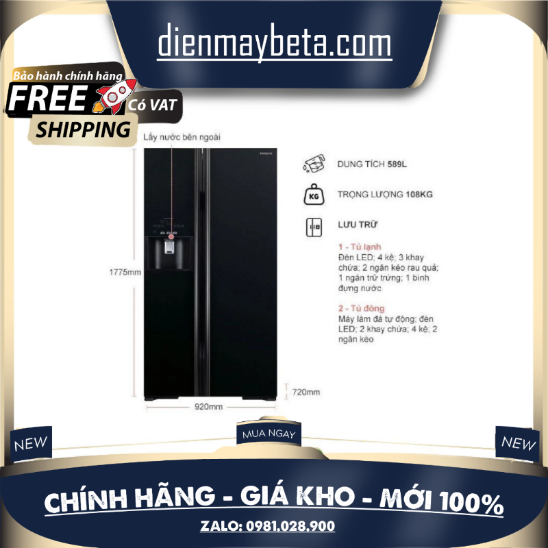Tủ lạnh Hitachi side by side 2 cửa màu đen R-FS800GPGV2(GBK) – Mới 100% Mới 100%