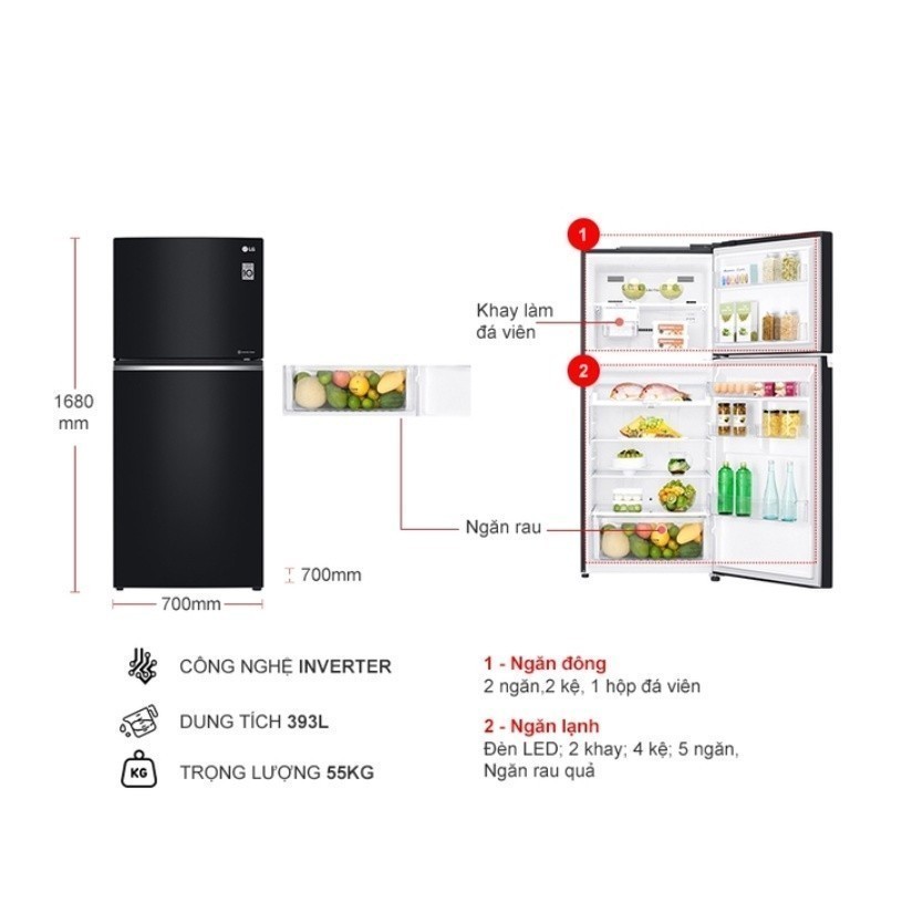 Tủ lanh LG GN-L422GB /Chính Hãng/ Tủ lạnh LG Inverter 393 lít GN-L422GBThông số kỹ thuật tủ lạnh:
