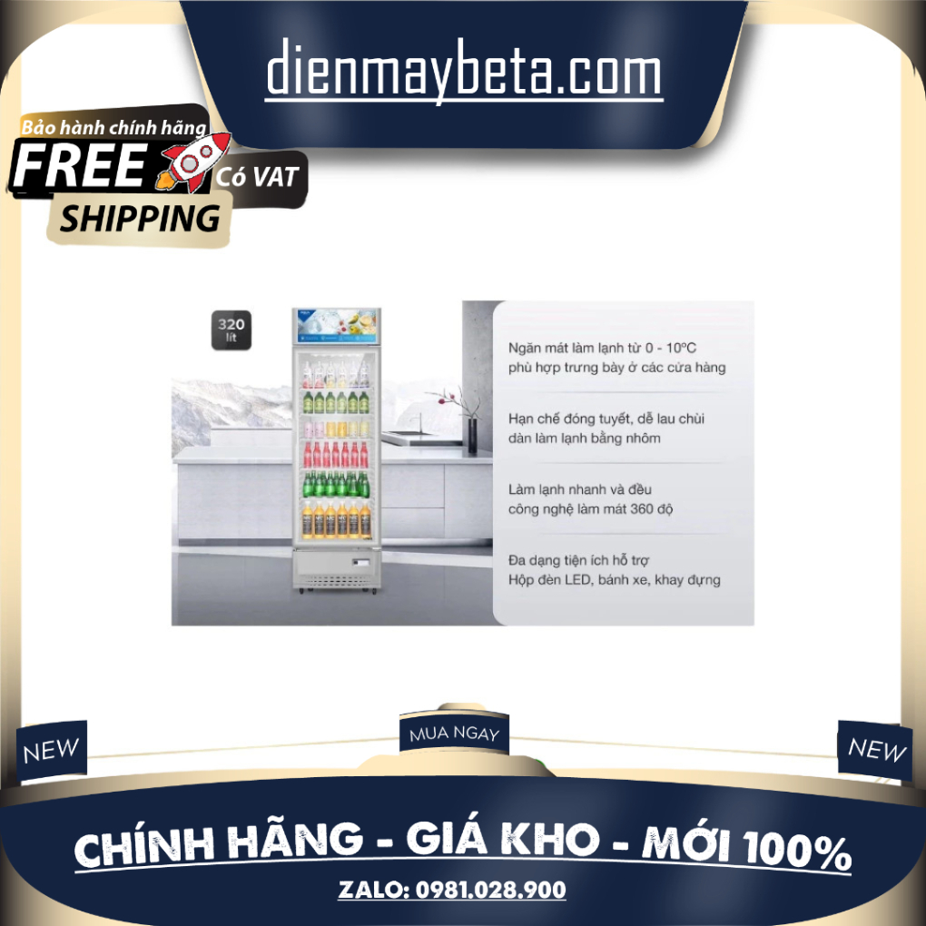 Được thiết kế với dung tích rộng rãi lên đến 320 lít, phục vụ tốt các nhu cầu lưu trữ đa dạng trong gia đình hay trong các quán ăn, nhà hàng. Bên cạnh đó, cửa tủ được làm bằng lớp kính trong suốt, dễ dàng quan sát bên trong. Cùng với đó là tông màu trắng chủ đạo tinh tế, sang trọng, phù hợp với mục đích trưng bày, trang trí. Làm lạnh nhanh chóng, bảo vệ môi trường với gas R600a