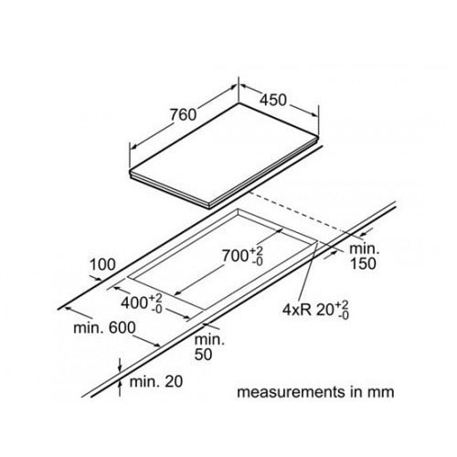 Kích thước bề mặt bếp : (CxRxS): 5,9 x 76 x 45 cm.