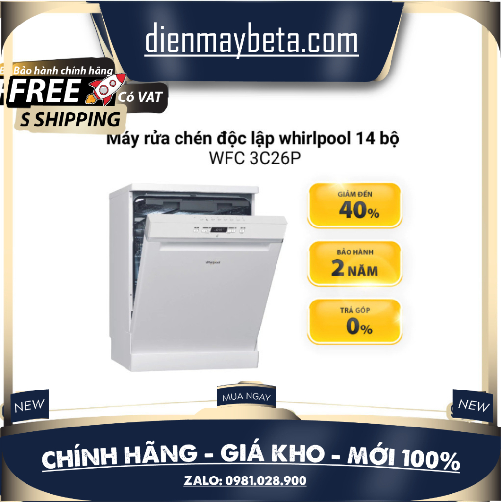 WFC 3C26P Máy rửa chén độc lập whirlpool 14 bộ WFC 3C26P – Hàng sản xuất Châu ÂU