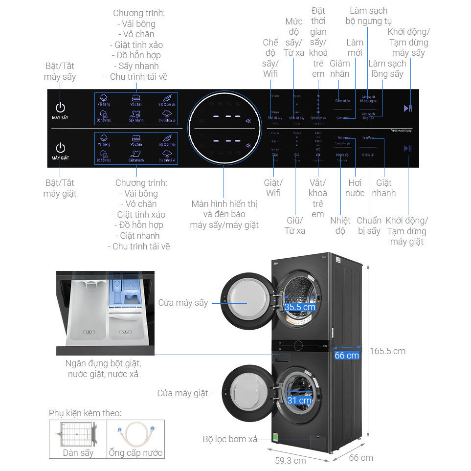 WT1410NHB (Đen) || WT1410NHEG (Xanh – Be) || WT1410NHE (Be) – Tháp Giặt Sấy LG WashTower™ Inverter 14 Kg | Sấy 10 Kg